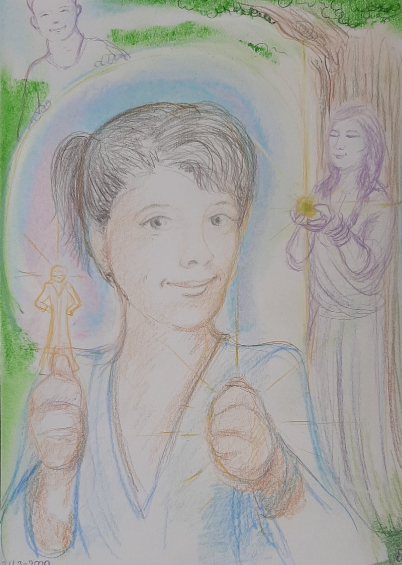 Iemand wordt getekend omdat hij/zij wil laten zien dat er wel degelijk leven na de dood is en dat er aan u wordt gedacht, dat zij u ook nog kunnen ondersteunen vanuit de andere dimensie. Soms is het een lieve groet en kunnen/mogen de personen u nog niet op uw pad begeleiden, daar ze zelf een andere weg moeten gaan voor hun eigen verdere ontwikkeling, maar komen ze wel steeds even kijken hoe met je gaat.